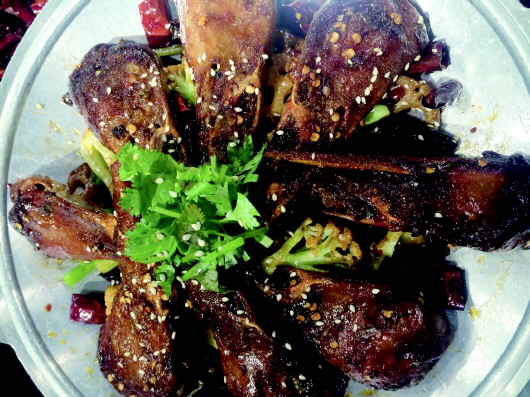 席间还有一道菜别有一番滋味,那就是干锅辣鸭头。