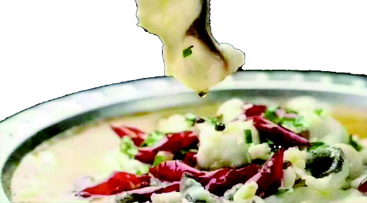 鱼片的白如她一样纯净,入口的酸犹如她的羞涩。这道菜酸辣爽口,汤汁浓郁但是不重。鱼片滑嫩入口即化,酸菜脆嫩爽口。一个菜吃不几种不同口感,丰富多彩。经理在一旁解读这道菜,我只记得,酸菜是重庆空运过来的,山城当地的天然气候能使腌制的酸菜更好的发酵,加以活鱼炖,吃起来更鲜,更酸爽。我以为离开重庆我再也吃不到这种味道了。