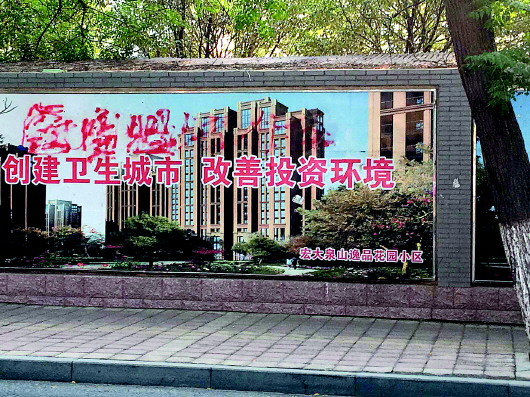 文化墙上的不和谐音符。 本报记者 支倩倩 摄