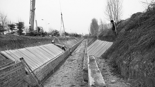 改扩建中的杨胡泄洪沟。(资料片)