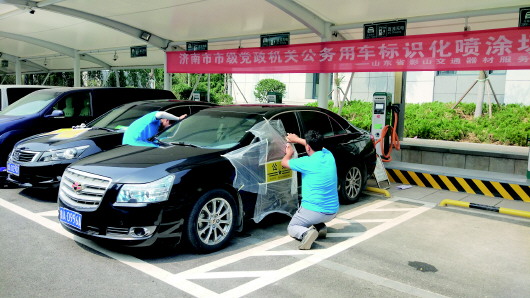 ◥19日,济南市公车标识喷涂正式开始,首日共完成20个单位、70余辆车的喷涂。