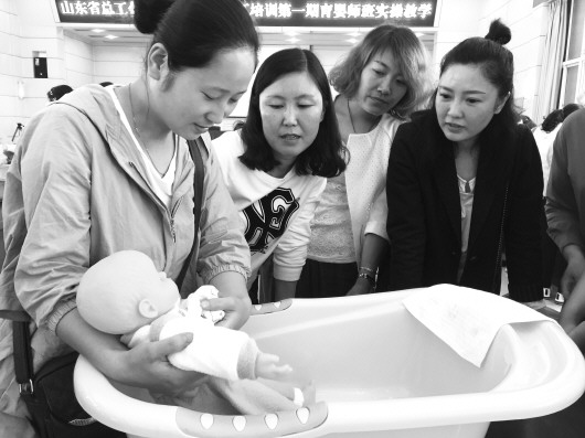 ◤育婴师培训班,学员们听讲解格外认真。