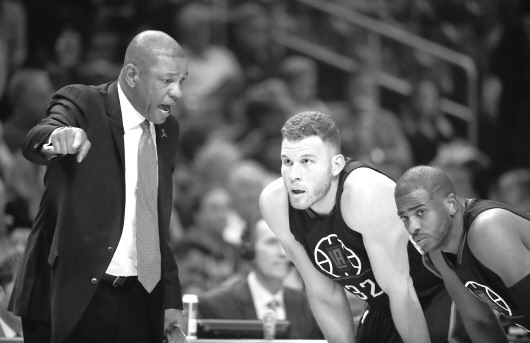 当家巨星格里芬(中)、保罗(右)都在闹出走,且看快船如何破解困局。 新华社发