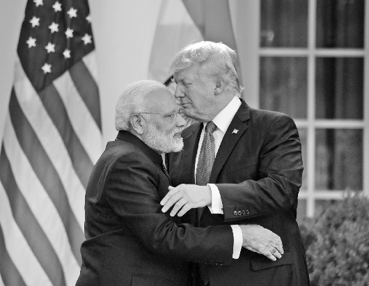 据新华社专电 美国总统特朗普26日在白宫会见来访的印度总理莫迪。这是两人首次会面。习惯了与他国领导人握手的特朗普当天频频和莫迪拥抱,还在白宫设晚宴招待莫迪。特朗普上台以来,媒体记者多次捕捉到他在白宫与来访外国领导人热情握手的瞬间。然而,此次他会见莫迪的风格明显不同。两人多次拥抱的场景,似乎暗示了美印关系的新动向。