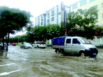 6日中午,市区不少路段已出现较深积水。 本报记者 崔如坤 摄