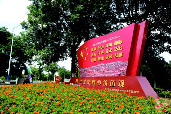 在主题公园(广场)内,展板、木刻、书法、橱窗,富含中国传统文化元素的各类造型呈现眼前,诠释了社会主义核心价值观内涵,让游客在休闲娱乐中陶冶情操,形成了主题鲜明、特色凸显的精神文明建设新阵地。