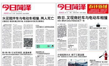 本报菏泽7月11日讯(记者 赵念东) 近期,本报先后以《水泥搅拌车与电动车相撞,两人死亡》《昨日,又现商砼车与电动车相撞》两文,报道了两起发生在菏泽市区主干道上的水泥罐车与电动车相撞,致人伤亡事件,引起市民广泛关注。一时间,屡屡“惹事”的商砼车成为众矢之的。近日,菏泽交警发布了《关于进一步规范渣土车、水泥罐车在市区通行的公告》,严查渣土车、水泥罐车上路。