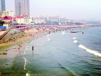 入伏后,海水浴场是消夏的好去处。