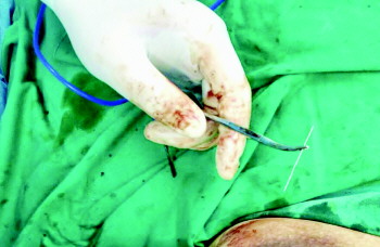 医生手术后取出钢针。