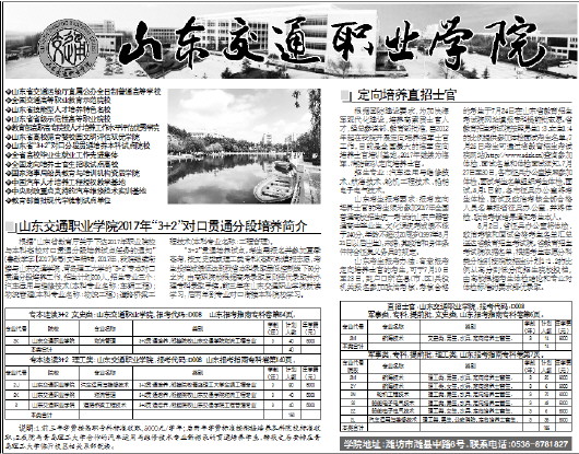 山东交通职业学院2017年“3+2”对口贯通分段培养简介