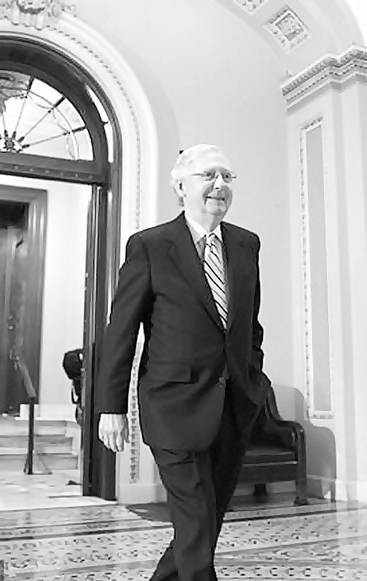 从左至右分别为:缅因州参议员苏珊·柯林斯、参议院多数党领袖米奇·麦康奈尔、阿拉斯加州参议员莉萨·穆尔科斯基和亚利桑那州资深参议员约翰·麦凯恩。