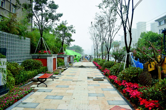 记者注意到,样板路南北长约15米,路边还放置着两米宽的深红色石凳,也就是说,未来市民走累了可以在路边休憩。“7月底计划完成基本的景观建设,8月初绿化主体工程完工。”上述工作人员表示。