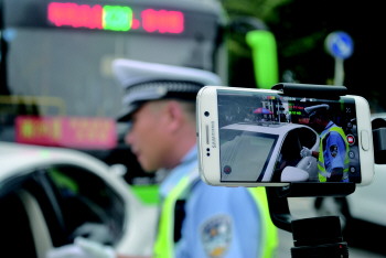“中国式过马路”现象曾令许多城市头疼,扭转这种不文明现象需要有关部门强化管理,规范行为,更需要全民参与。菏泽交警开展礼让斑马线直播活动,把礼让斑马线的行为和不礼让的行为晒在网上,让群众对斑马线上的交通行为进行评判,这种接地气的宣传形式,既对不礼让者以监督,又有助于对礼让者的褒奖,传播文明新风。图为:26日晚高峰期间,菏泽交警在中华路与和平路路口进行直播。