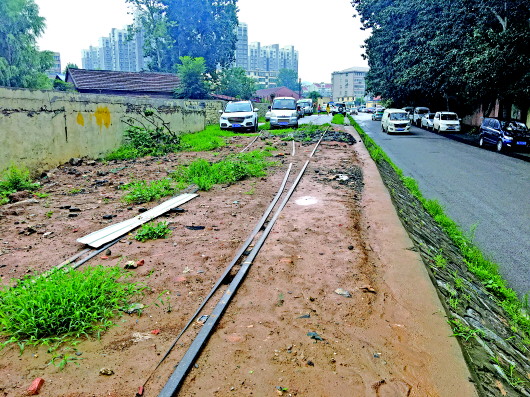 记者了解到,这条铁轨原是济钢和二钢之间运输专线,从现在的中央商务区通过,然后进入工业南路,奥体西路西侧还留有一段废铁轨。而奥体西路西侧铁轨形成土墙,因近期降雨较多,这堵土墙缺口处泥泞不堪,给周边民众出行带来很大不便。