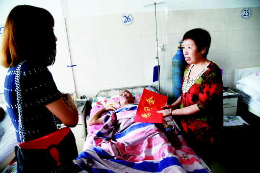 8月2日上午,德州福彩联合本报到医院走访慰问重病患者。