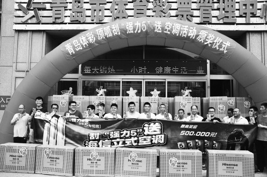 “哇,这么多空调!这是中的什么奖?”8月2日中午,18位在顶呱刮“强力5”送空调活动中获奖的彩民齐聚青岛体彩中心领奖,壮观的场面吸引了不少过往行人围观。