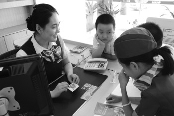 暑假期间,招商银行济宁分行开展“暑期小小理财家活动”,分行下辖7家支行分别邀请了一批小朋友参与其中,通过现场授课、亲子游戏、互动教学、上岗迎宾、自助操作等方式普及金融知识,培养提升儿童财商。图为3日运河支行理财经理向小朋友讲解银行卡知识。
