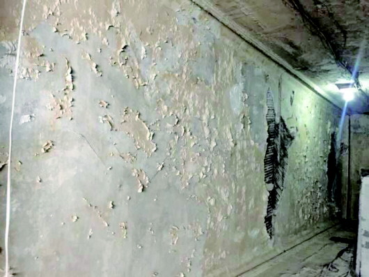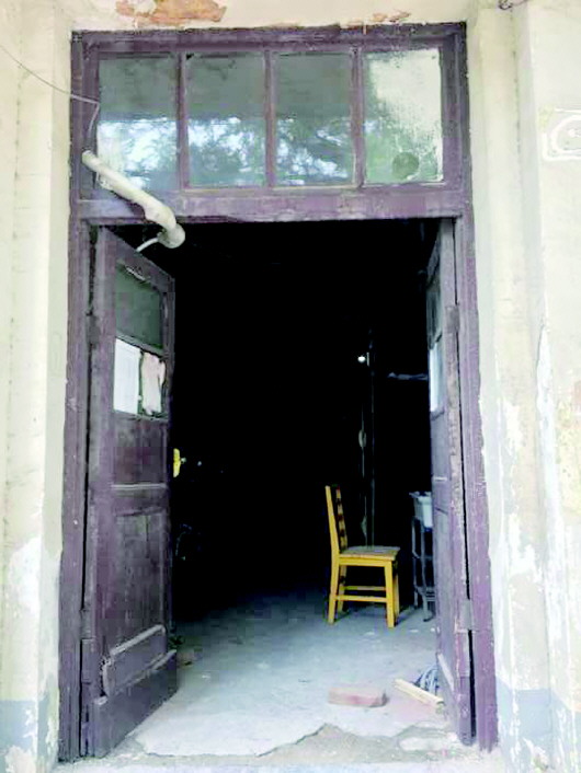 ◥德国诊所旧址一楼天花板、墙皮脱落。