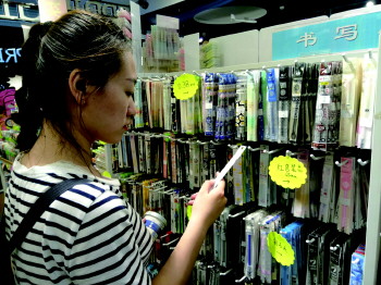 看到书包买一送一,王妈妈仔细用手摸摸书包的帆布材质,然后拉开拉锁看了看内部构造说,“这个大嘴猴牌子的书包平时不打折,现在太合算了!一次性买俩书包,孩子一定很开心。”而初二学生小李正往购物篮里放置了许多东西,钢笔、笔记本、便签…….她告诉记者开学前,把所有文具“辞旧迎新”,是她迎接新学期的方式。