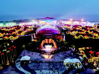 ◥每当夜幕降临,金沙滩啤酒城便开启“不夜城”的狂欢模式。 左修国 摄