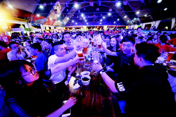 “今年明显觉得游客更多了,有些客人一入园就奔着我们大篷来了,回头客大都会提前预定座位。”已经在这里经营了三年啤酒大篷的老板白贵菊说,除了平均每天1500人左右的客流,每天可观的盈利也让她对整个啤酒节期间的收入做出更好预期。