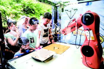 “快来看!机器人和小朋友下五子棋!”8月16日,在中国机器人大赛户外展区,山东海大机器人科技有限公司的展区吸引了很多人前来观看。机械手臂拿着五子棋,熟练地和小朋友下起了五子棋。几位小朋友轮番尝试,均败下阵来。