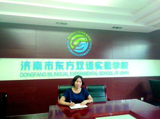 家委会主席魏海霞在学校会议室。