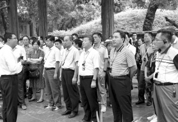 26日,山东理工职业学院党委成员带领学院中层干部、辅导员等280余人前往曲阜接受政德培训。在讲解教员的带领下,先后前往孔庙、孔府、孔林和孔子研究院现场教学点学习。在孔庙大成殿前,一行人就辅导员职责、学院校训、学风、教风等进行了集体宣誓。 本报记者 姬生辉 通讯员 曹文洪 摄