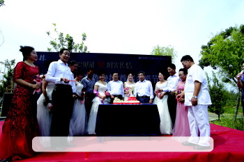 9月3日上午,由齐鲁晚报牵手东辰十六栋举办的“齐鲁晚报·东辰集团首届金婚节”在十六栋售楼处精彩上演。50对中老年夫妇穿上西装婚纱,画好精美的妆容,共同品尝甜蜜的蛋糕,追忆着似水年华的爱情故事。