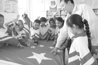 开学了,峄城区峨山镇中心小学各班级利用国旗对学生上第一堂课——爱国主义教育。希望同学们严以律已,养成良好的人格素质和道德规范,严格遵守社会公德,在社会上做一个合格小公民。遵守学校各项规章制度,做一个合格的学生,尊敬师长,团结同学,互助友爱,让师生情谊、学友情谊受益终身。 (王厚年 摄)