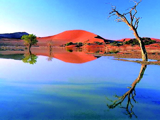 风景的自然属性也是有两种形态的:其一是客观的、不加任何人工修饰的、原生态的自然风貌,这就是如今活在后现代文明生活环境中被“机械化”了的人,为了摆脱文化的困扰而寻觅追求的那种情景和情境;其二是人类为了攫取、褫夺、利用大自然而对其进行改造、破坏或美化过的风景。当一个旅游者的目光已然分不清这两种形态之间美丑的根本区别时,也就是人类对自然的掠夺已然失去了歉疚感,麻木甚至理所当然地在欣赏快感中获得大自然给予的“馈赠”。