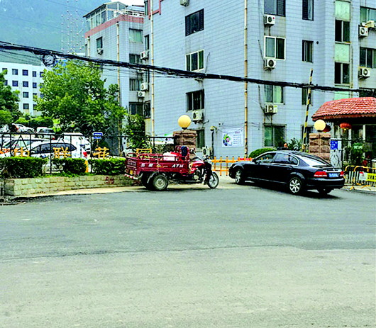 没有门禁卡的车进出小区,车主需要停车说明情况。 见习记者 张晓燕 摄