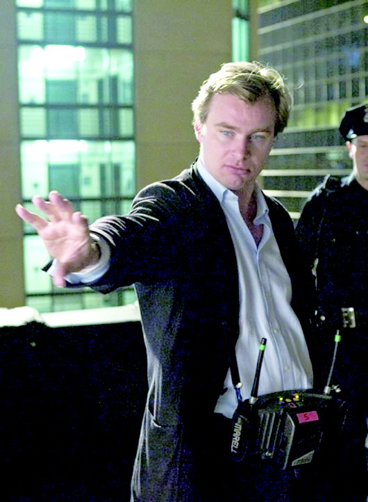 诺兰在片场说戏。
