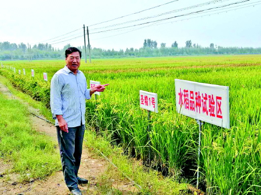赵光华介绍园区种植的水稻品种。 本报记者 梁越 摄