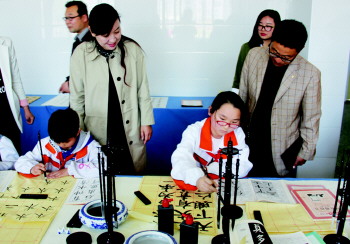 仲山镇小学生书法大赛。
