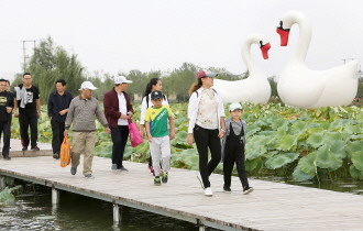 国庆、中秋小长假期间,京杭大运河畔的台儿庄双龙湖观鸟园“游进”两只身高各有20米的巨型“天鹅”气模,为节日增添不少乐趣。 本报通讯员 吉吉吉 时培京 摄影报道