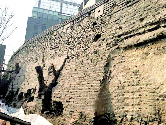 重见天日的老城墙。 (资料片) 本报记者 刘飞跃 摄