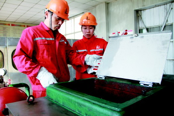 10月6日,胜利油田东辛采油厂营一管理区生产指挥中心干事黄惠峰和注水1站员工一起加强柱塞泵巡检,及时解决柱塞漏失量过大的问题,有效保障设备节日平稳运行。节日期间,该管理区机关干部认真落实节日值班制度,深入承包班站、生产一线,督促原油生产。严格执行“两特”带班管理制度,做到值班领导干部到位、人员到位、生产措施到位、突发情况处理到位,及时送服务到一线,帮助基层员工解决生产难题。