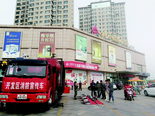 本报10月10日讯(记者 王忠才 通讯员 王珊珊) 为扎实有效地做好消防安全宣传教育工作,切实提升广大人民群众的消防安全意识和自防自救能力,确保“双节”期间辖区内火灾形势稳定。10月1日至8日,开发区大队利用消防宣传车,在中海水利风景区、银座华星店广场等人员密集场所开展消防安全宣传。