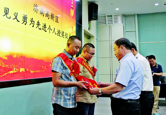 济南高新区授予杨震、苏超见义勇为先进个人。 本报记者 修从涛 摄