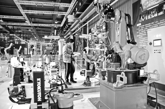 作为一家主要从事工业机器人生产的企业,迈赫已经可以为华晨宝马、长安福特等许多大型车企提供智能制造产品。 本报记者 高寒 摄