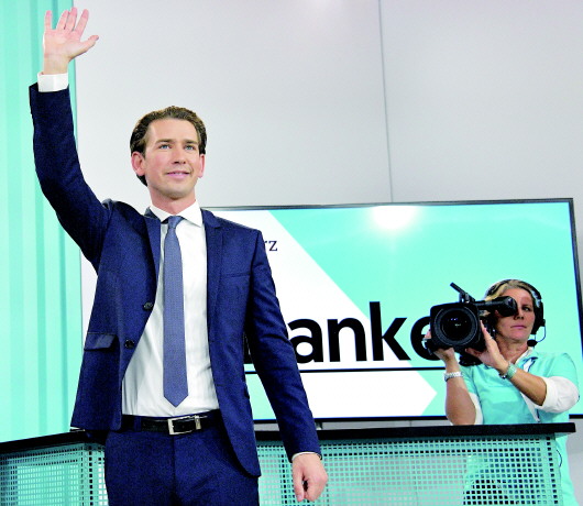 10月15日,在维也纳,库尔茨出席人民党举行的庆祝仪式。 新华/路透