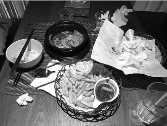 16日,在薛城一西餐厅,一对情侣就餐后剩了不少食物。