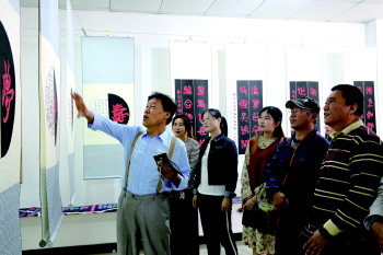 郑珉老师向参观者讲解作品。 刘慧欣 摄