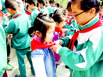 悦庄镇埠村希望小学举行少先队入队仪式。
