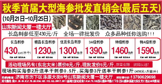 秋季首届大型海参批发直销会(最后五天)