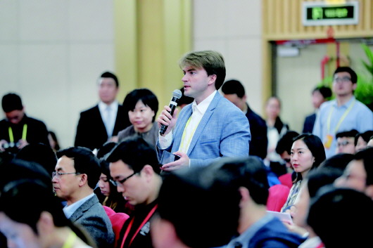 10月19日,中国共产党第十九次全国代表大会新闻中心举行记者招待会,图为外国记者在提问。 新华社发