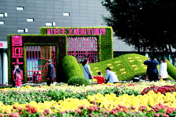 “去年的菊展我们一家四口也都来了,今天天气挺暖和,孩子们到了菊展可劲的‘撒欢’拍照,这也是一个陪孩子的很好的机会。”谈到与往届菊展的变化,商先生说,今年菊花展增加了特别多的“中国元素”。“歼-20飞机”,“社会主义核心价值观”等独有的“中国特色”菊花展台,这也让孩子可以更加直观的进行科普、爱国文化知识学习。