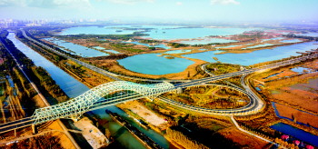 2016年底开工建设的枣庄至菏泽跨微山湖高速公路,临建工程完成80%,预计2019年完工,将途经微山、鱼台、金乡3个县,建设一座跨微山湖特大桥。一座座横跨济宁上空的现代桥梁,正在成为重塑济宁经济地理的新标志,勾勒出济宁经济运行效率的新版图。