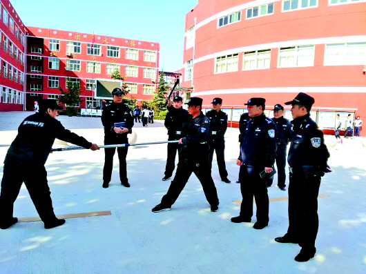 强化校园内部安保力量建设。针对辖区实际情况,长清公安分局调派社区民警深入学校,强化保安员资格审查,要求校方配备及定期维护安全叉、抓捕器、橡胶棒、防暴头盔、盾牌等等必要的安全应急处置装备器械。